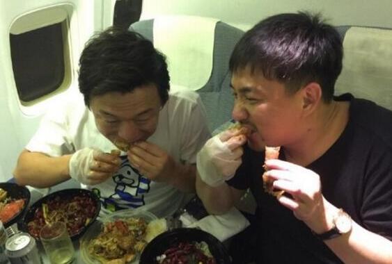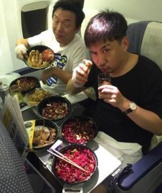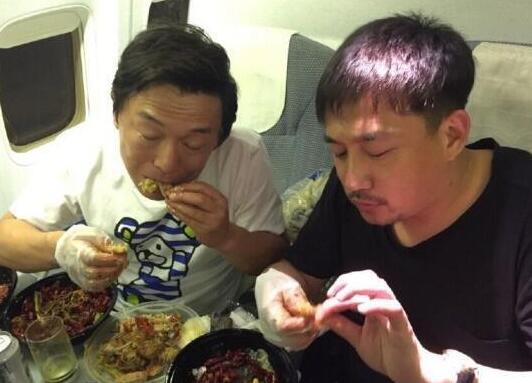 26日晚,孫紅雷在微博曬出一組《極限挑戰(zhàn)》的人馬在飛機(jī)上的照片。照片中黃渤與黃磊大開吃戒,吃得油光滿面,一臉滿足。