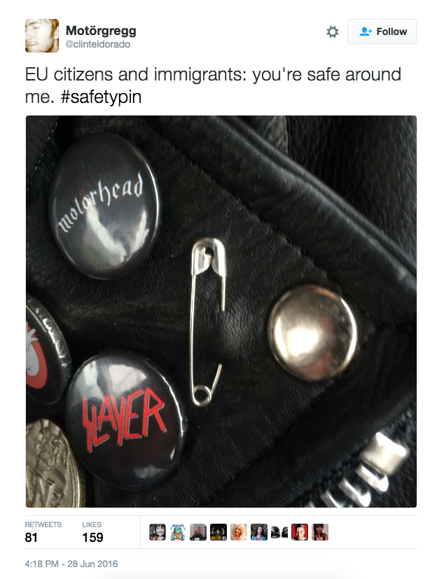 網(wǎng)友:戴上別針和英國所有的移民在一起,你們可以把我當做可信任的人