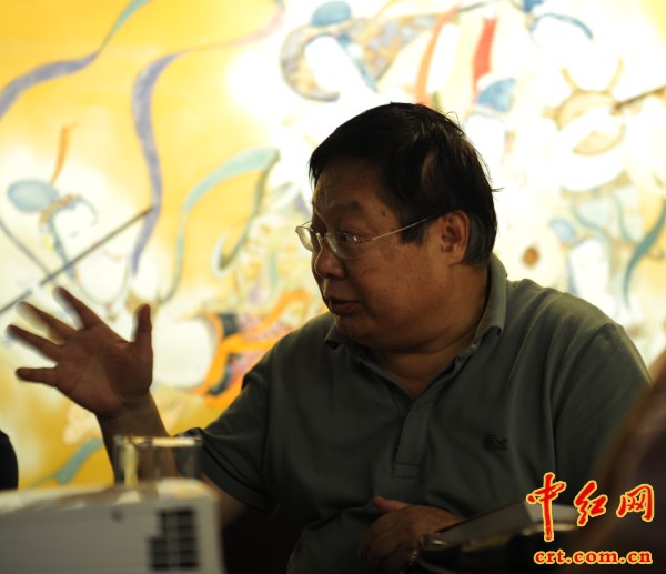 孫晶巖在研討會(huì)現(xiàn)場(chǎng)接受北京電視臺(tái)的采訪。