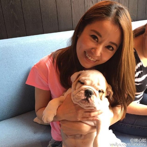 照片中林心如抱著一只昏昏欲睡的狗狗,還露出開心的笑容,雖40歲仍甜美如初。