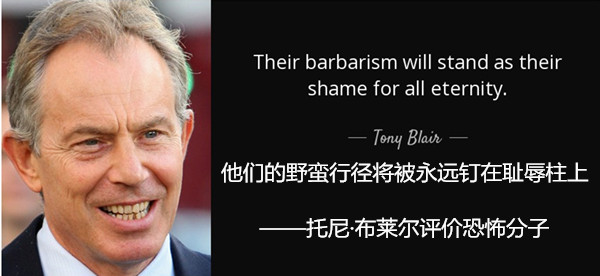 想當年911恐怖襲擊之后,布萊爾義曾正辭嚴地痛斥恐怖分子“野蠻行徑將被永遠釘在恥辱柱上”。