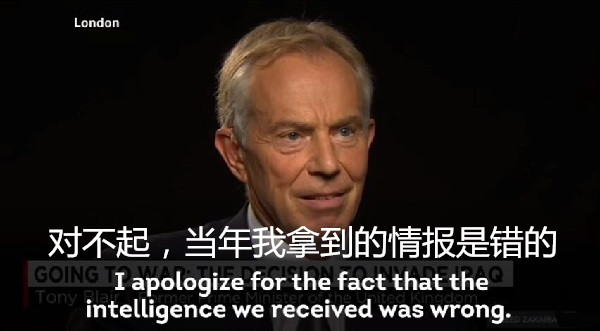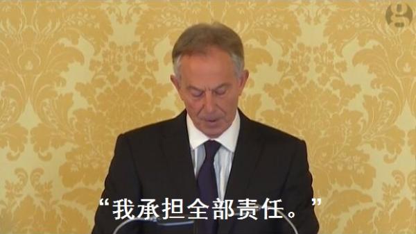 布萊爾自己也發(fā)表公開講話承認為侵略伊拉克“承擔全部責任”。