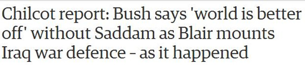然而7月6日英國發(fā)布的《齊爾考特報告》卻揭開了當年的無數(shù)謊言。人們驚覺:原來當年入侵伊拉克的所有理由幾乎都不成立!