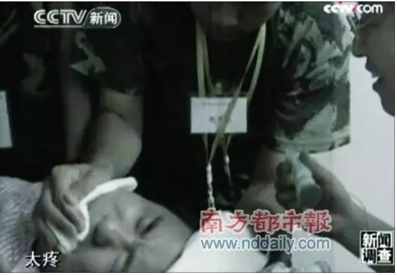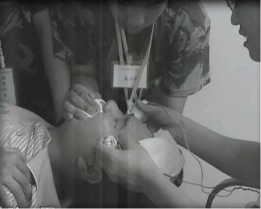 網(wǎng)上流傳文章配圖,13號治療室里的電擊療法,被電擊的孩子大聲呼疼,楊教授卻早已習以為常