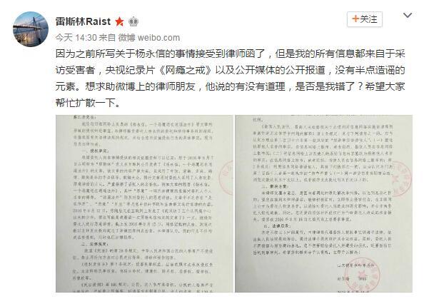 近日,從莉莉絲游戲人雷斯林(蔡江舟)的一貼網(wǎng)文《楊永信,一個惡魔還在逍遙法外》開始,楊永信與他的網(wǎng)戒中心在網(wǎng)絡(luò)上重新掀起風波。17日,此事有了最新進展,該文章的作者雷斯林發(fā)布微博稱收到了楊永信發(fā)的律師函,雷斯林被要求“公開賠禮道歉”。中青報在今天的社評中則稱,不稱職的家長比電擊治網(wǎng)癮的楊永信更可怕。