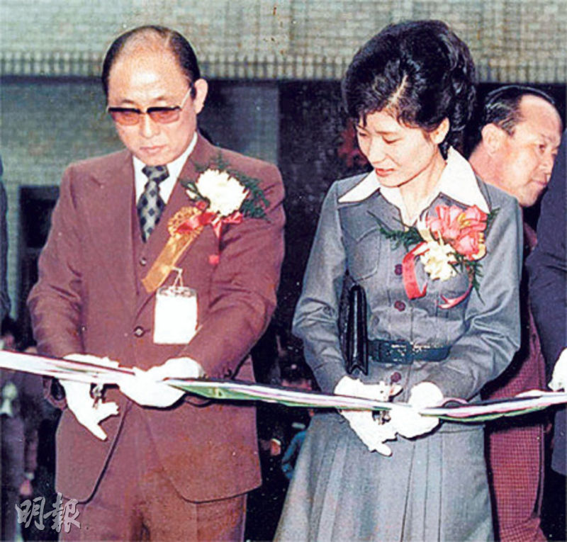 1977年,崔太敏(左)與樸槿惠(右)一起出席剪彩活動
