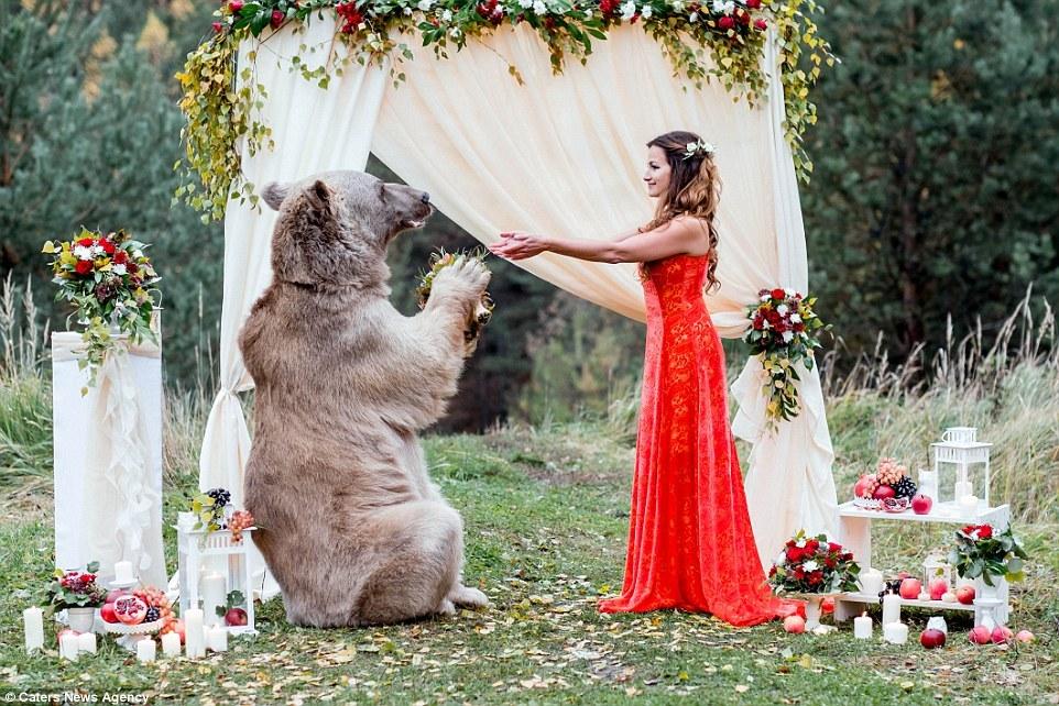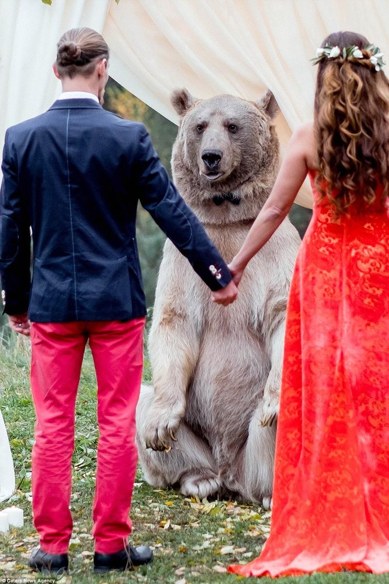 別出心裁!俄羅斯新人請267斤灰熊做婚禮證人