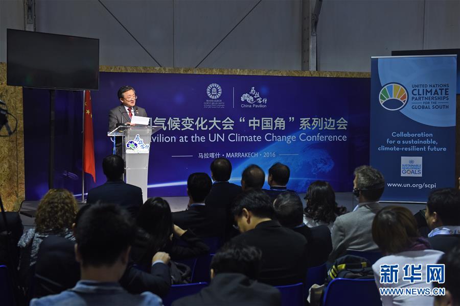 11月14日,在摩洛哥馬拉喀什舉行的聯(lián)合國(guó)氣候大會(huì)上,中國(guó)代表團(tuán)副團(tuán)長(zhǎng)、外交部副部長(zhǎng)劉振民在“中國(guó)角”系列邊會(huì)中的“應(yīng)對(duì)氣候變化南南合作高級(jí)別論壇”上講話。劉振民說(shuō),氣候合作是中國(guó)開展南南合作的優(yōu)先和重點(diǎn)領(lǐng)域。中國(guó)在敦促發(fā)達(dá)國(guó)家履行國(guó)際義務(wù)的同時(shí),將積極支持其他發(fā)展中國(guó)家應(yīng)對(duì)氣候變化。新華社記者 趙丁喆 攝