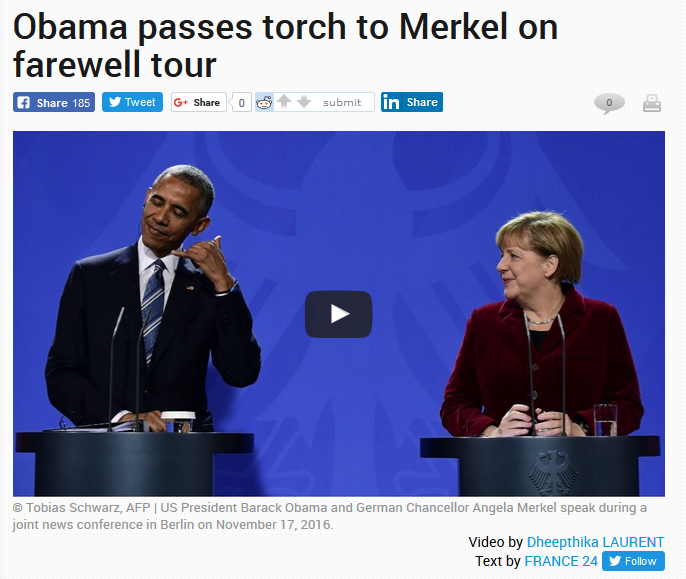 告別之旅,奧巴馬將“火炬”交給默克爾