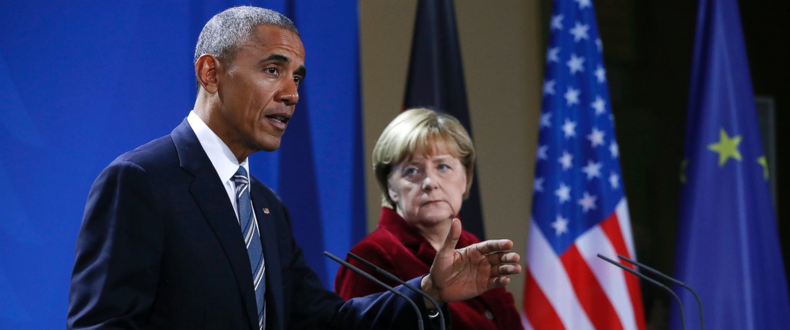 奧巴馬16日抵達(dá)柏林,當(dāng)晚同默克爾共進(jìn)了晚餐。17日二人再次進(jìn)行會(huì)談,談及反恐斗爭(zhēng)、敘利亞局勢(shì)、氣候保護(hù)等議題。奧巴馬盛贊歐盟的成立是全世界迄今為止最重大的成功典范之一。盡管跨大西洋貿(mào)易和投資伙伴協(xié)定(TTIP)在德國(guó)和多個(gè)歐洲國(guó)家屢屢碰壁,但是默克爾和奧巴馬仍借17日記者會(huì)之機(jī),再次為這一協(xié)定猛作宣傳。