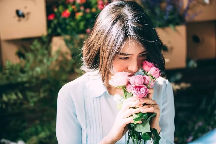 高圓圓剪短發(fā)還是那么美!手捧鮮花笑容溫婉