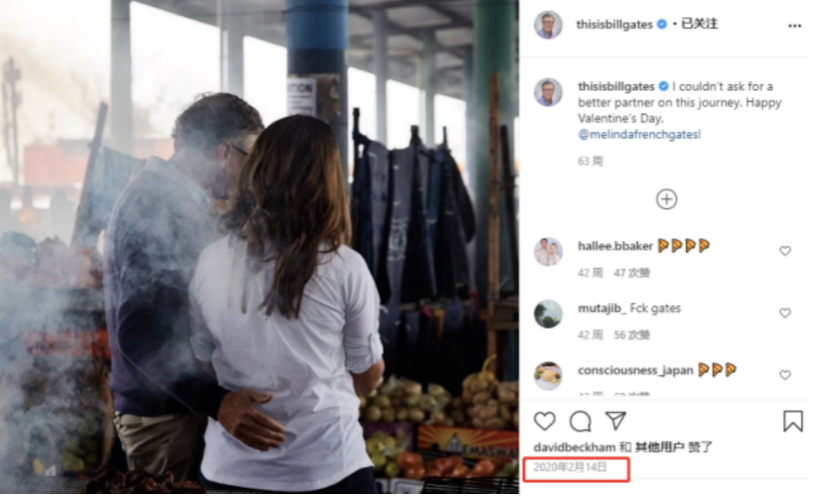 去年情人節(jié),比爾·蓋茨曬出摟著梅琳達(dá)一起逛水果市場(chǎng)的背影照,配文寫(xiě)道,我無(wú)法再找到這一生更好的伴侶了,還艾特了梅琳達(dá)。