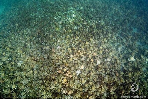 希爾還說道,在當(dāng)?shù)?,很少有人知道蜘蛛蟹集體遷徙的事。她也被這一幕深深震撼到了,這是她潛水20年以來看到的最為龐大的蟹群遷徙。