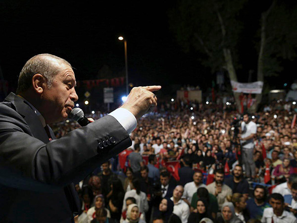 埃爾多安向支持他的示威群眾講話