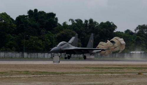 圖為在新型機場降落的印度空軍SU-30MKI戰(zhàn)斗機