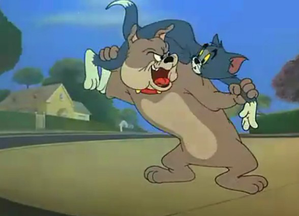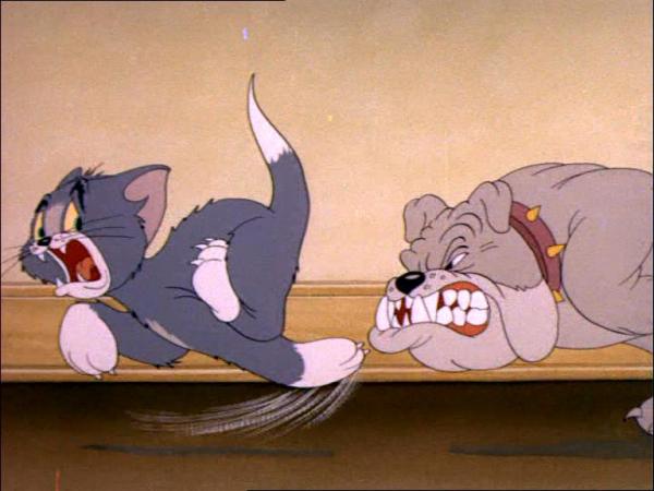 其實(shí),我們都很熟悉。那幾只狗狗的品種,和動(dòng)畫片里老把湯姆打得滿地找牙的那只狗是一樣的。這個(gè)品種有個(gè)中文名:“美國(guó)惡霸犬”(不是針對(duì)誰(shuí))。
