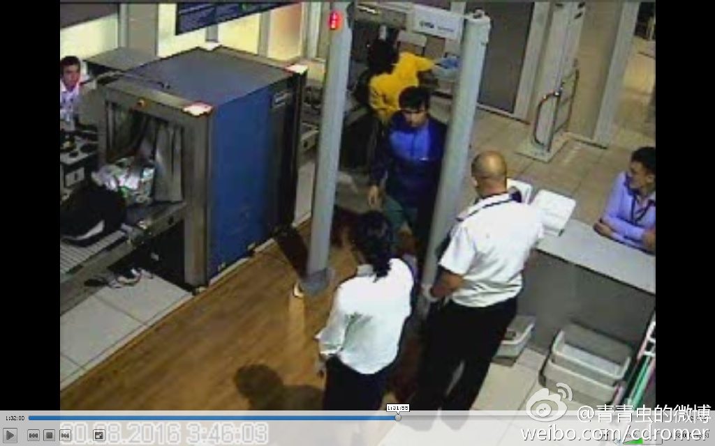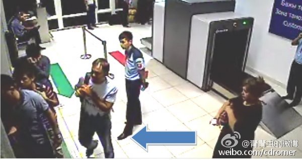圖為奧什·伊佐基洛·薩提巴耶夫在出逃時通過機(jī)場安檢時的照片。