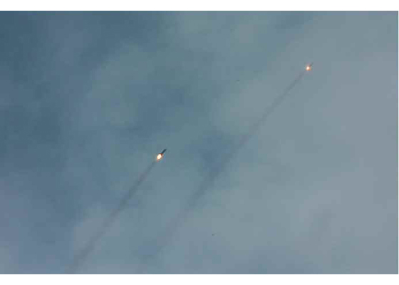公開的兩分鐘影片中,3發(fā)彈道導彈豎起后依次發(fā)射升空,噴出橙色的火焰。整個視頻影像從各種不同角度拍攝了發(fā)射的全過程。伴隨巨大聲響,在畫面中3發(fā)彈道導彈向同一個方向飛去。