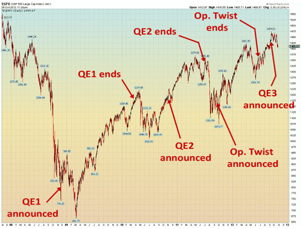 標(biāo)普500指數(shù)隨著QE上下翻飛