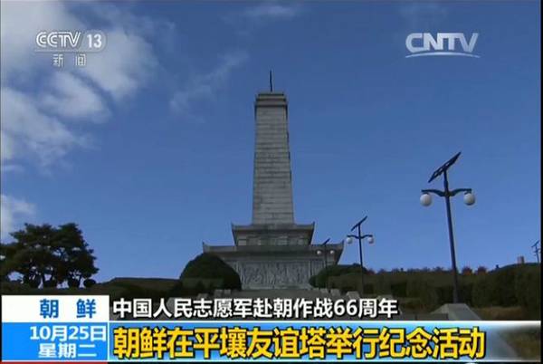 央視新聞10月25日報道,10月25號是中國人民志愿軍赴朝作戰(zhàn)66周年紀(jì)念日。當(dāng)天,朝鮮在平壤友誼塔等地隆重舉辦紀(jì)念活動。