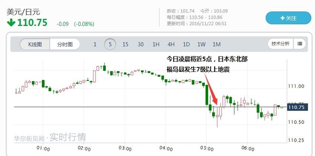另據(jù)華爾街見聞報道,福島縣地震消息傳出后,日本資本市場有明顯反應,股指期貨止?jié)q回落,日元匯率走高。
