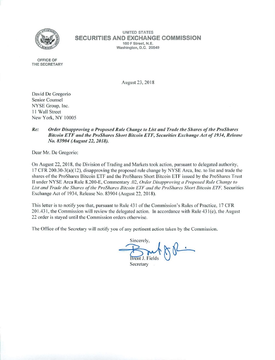SEC工作人員在昨天晚些時(shí)候公布的結(jié)果中,拒絕了Proshares, GraniteShares以及Direxion這三家公司的比特幣ETF申請(qǐng)。然而,根據(jù)最新的信件,SEC高級(jí)官員將審查這些命令,目前尚不清楚審查將在何時(shí)完成。