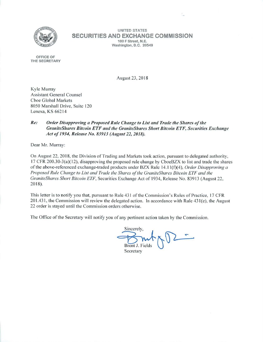 “本信函通知你們,根據(jù)根據(jù)委員會(huì)43 I慣例規(guī)則( 17 CFR 20 I .43 1),委員會(huì)將會(huì)審查這些判定。根據(jù)431(e)規(guī)則,8月22日的判定暫且保留,委員會(huì)重新給出結(jié)果?!?/p>