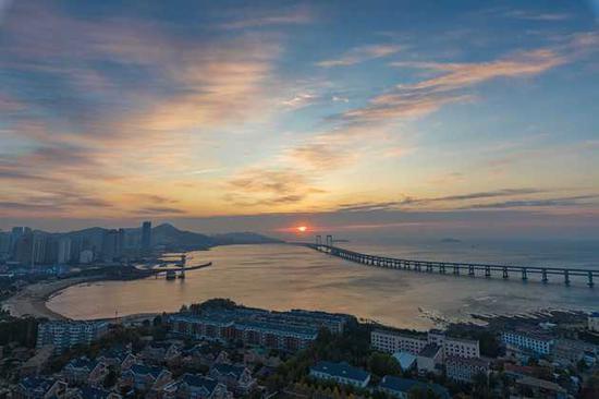 1月11日7時(shí)許,一場(chǎng)關(guān)乎第三東通道建設(shè)進(jìn)度的重要海上轉(zhuǎn)運(yùn)作業(yè),在晨光熹微中拉開(kāi)序幕。廈門(mén)市海洋與漁業(yè)綜合執(zhí)法支隊(duì)四大隊(duì)(以下簡(jiǎn)稱四大隊(duì))執(zhí)法人員準(zhǔn)時(shí)抵達(dá)第三東通道33號(hào)橋墩附近海域,為千噸級(jí)鋼構(gòu)架海上轉(zhuǎn)運(yùn)任務(wù)提供專項(xiàng)護(hù)航保障?!摌?gòu)架行駛途中此刻的作業(yè)海域,一派繁忙有序的景象。巨型工程船巍然屹立于碧波之上,紅白相間的重型起