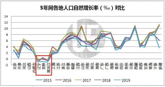 但于吉林,2017年后自然增長(zhǎng)率回正,2019年出現(xiàn)大幅下降,甚至已低于遼寧;于黑龍江,其自然增長(zhǎng)率自2015年后,一直徘徊在零線以下,國(guó)家衛(wèi)健委關(guān)于探索“全面放開(kāi)人口生育限制”的答復(fù)中,還專門(mén)點(diǎn)名黑龍江: