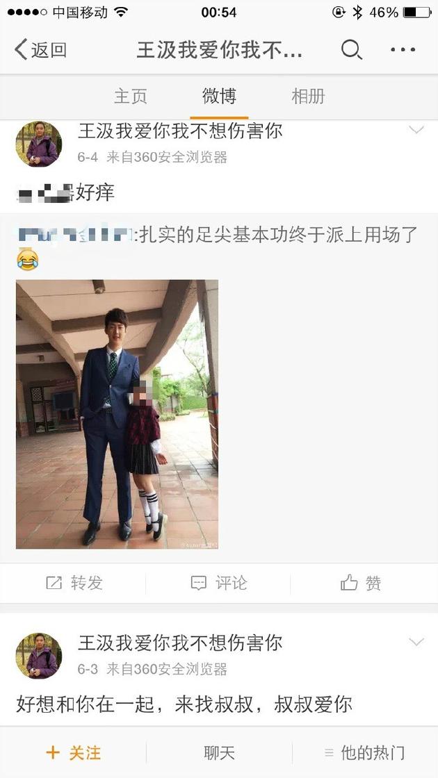 近期,有網(wǎng)友舉報稱,微博名為“王汲我愛你我不想傷害你”的人經(jīng)常在女童星微博下留言,言語污穢、不堪入目,性挑逗意向明確。據(jù)悉,該人是一名31歲男子,姓孫,曾經(jīng)公開起訴過童星林妙可,理由是自己曾在林妙可微博上多次留言,但始終未得到回復(fù)。他認(rèn)為林妙可的行為侵犯了其人格尊嚴(yán)和身心健康,起訴索賠。