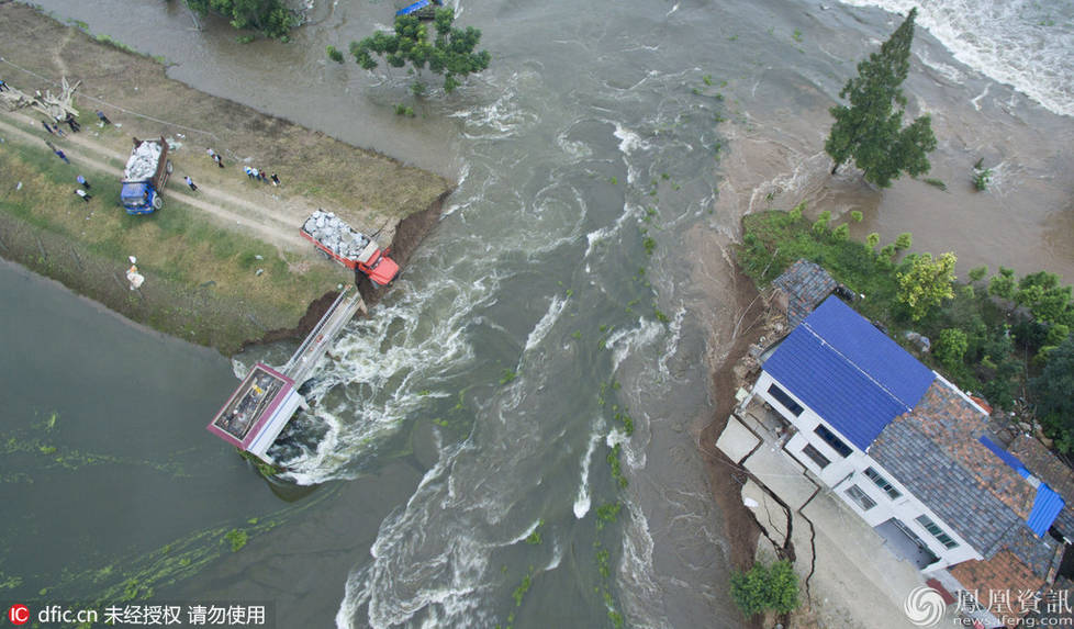 下午5點(diǎn),在潰口東邊,已經(jīng)有5名“敢死隊(duì)”成員義無反顧地沖了上去。此時(shí)的劉勝把安全繩拴在腰間,收好駕駛證和行駛證,打開駕駛位的車門,右腳將油門踩到了底,隨著一聲“走”,迅速掛擋、抬離合。幾十噸重的卡車一個(gè)猛起步便沖了出去。在離潰口只有兩米遠(yuǎn)的地方,劉勝一躍而出,摔在了大堤的草坪上。
