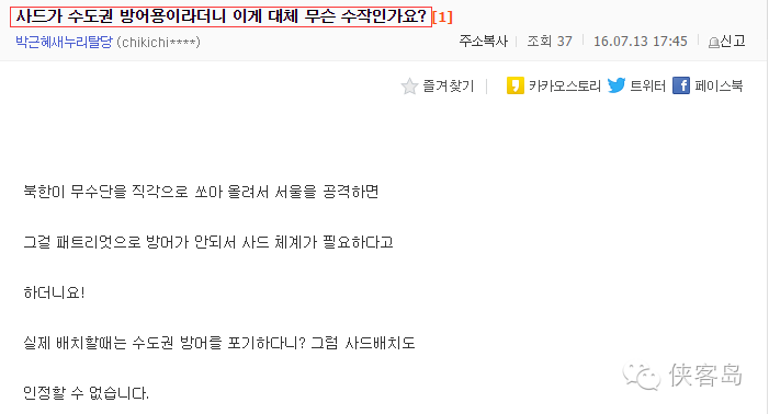 這位說:說是為了國家安全,結果卻部署在一個連首爾都保護不了的地方,這說得通么?