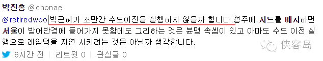 這位說:我覺得樸槿惠總統(tǒng)大概早晚會遷都的