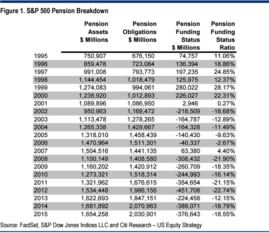 周一發(fā)布的報(bào)告當(dāng)中,列夫科維奇(Tobias M. Levkovich)和其團(tuán)隊(duì)對(duì)美國(guó)企業(yè)的養(yǎng)老金壓力進(jìn)行了分析。