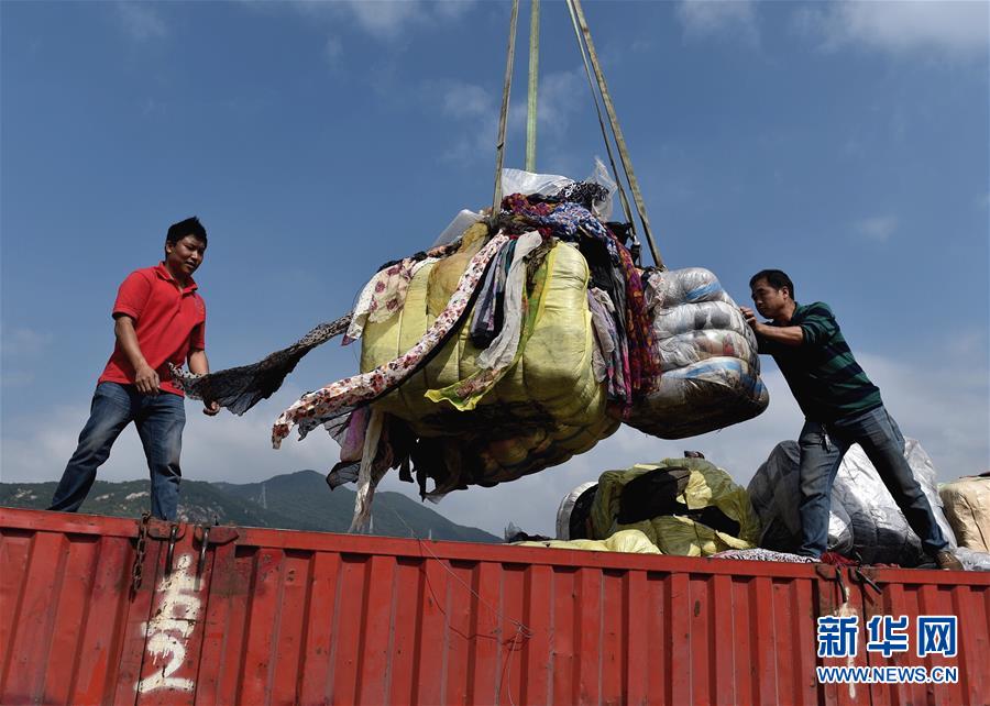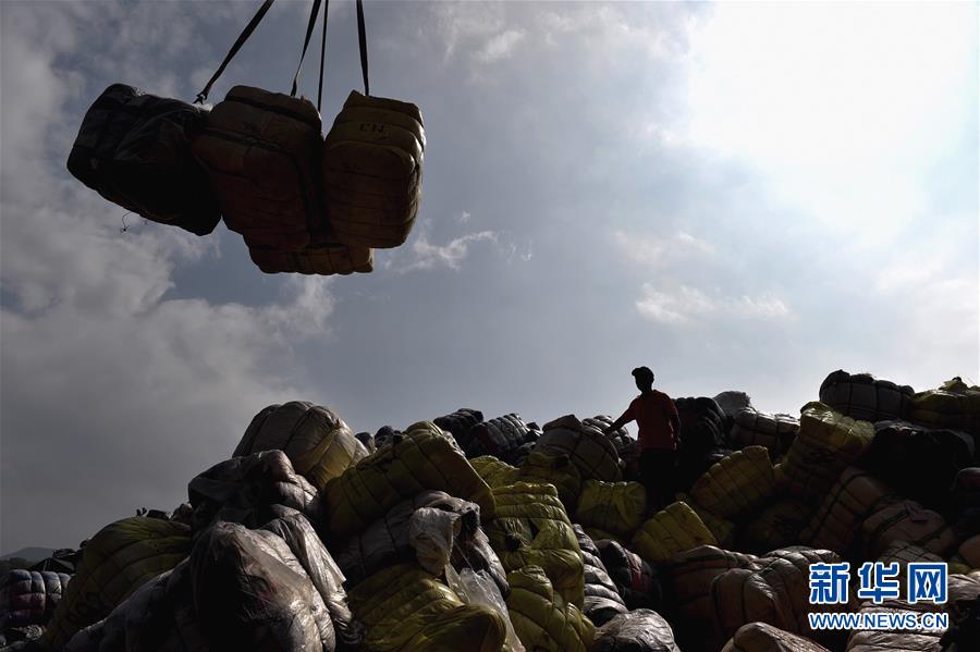 11月17日,工作人員在深圳土洋碼頭搬運(yùn)走私廢舊衣物。