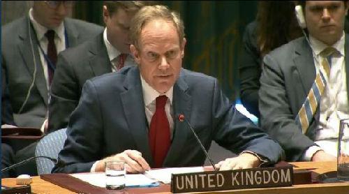 在最后的十幾秒中,劉結(jié)一索性完全脫稿:“有關(guān)國(guó)家應(yīng)當(dāng)深刻反思,中東和敘利亞是怎樣走到今天的局面的?不同國(guó)家又扮演了什么角色?哪些是光彩的、哪些是不光彩的?只把‘人民’掛在口頭上,是極其虛偽的?!痹谥袊?guó)代表的發(fā)言全程中,英國(guó)代表里克羅夫特時(shí)常用手托著下巴,似乎若有所思。而劉結(jié)一發(fā)言完畢后,他與里克羅夫特四目相對(duì)(如下圖),有沒(méi)有感受到現(xiàn)場(chǎng)的“火藥味”?