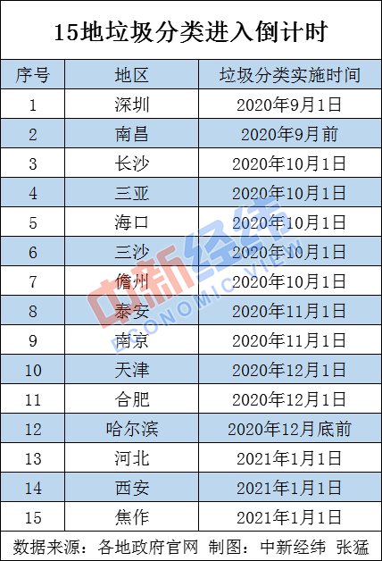 除了以上10地紛紛加入垃圾分類“朋友圈”,深圳、南昌、長沙、三亞、??凇⑷?、儋州、泰安、南京、天津、合肥、哈爾濱、河北、西安、焦作等15地垃圾分類進入倒計時。