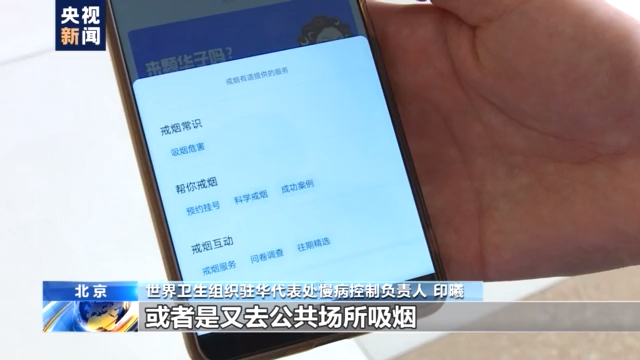 世界衛(wèi)生組織駐華代表處慢病控制負(fù)責(zé)人 印曦:去主動(dòng)去了解一下吸煙到底對(duì)自己有什么樣的身體上邊的一個(gè)損害,不是說就腦子里泛泛的知道,吸煙有害健康,那轉(zhuǎn)眼又去吸煙,或者是又去在公共場(chǎng)所吸煙。一時(shí)戒不斷的話,請(qǐng)不要在公共場(chǎng)所吸煙,不要把你自己吸煙的自由建立在別人,損害別人的健康上。