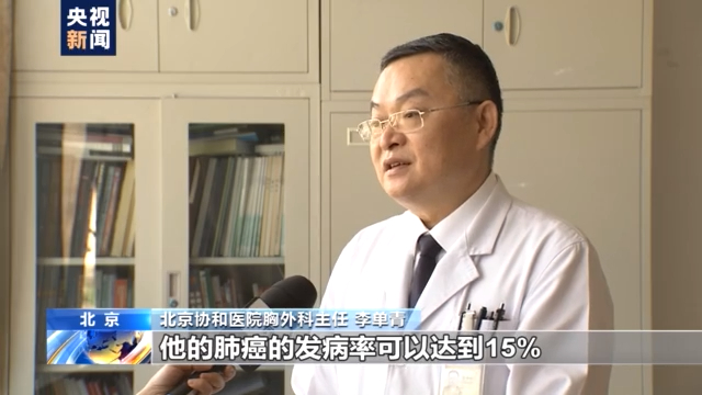 京協(xié)和醫(yī)院胸外科主任 李單青:每天一個(gè)人抽煙10根到20根的,他的肺癌發(fā)病率可以達(dá)到15%,如果抽煙一天20到40支的可以上升到28%,每天如果抽煙量超過40支以上的,立馬就翻番,就是說抽煙以后造成的肺癌發(fā)病率就可以達(dá)到68%。