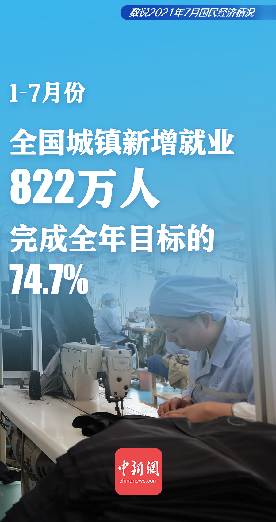 國(guó)家統(tǒng)計(jì)局:前7月全國(guó)城鎮(zhèn)新增就業(yè)822萬(wàn)人