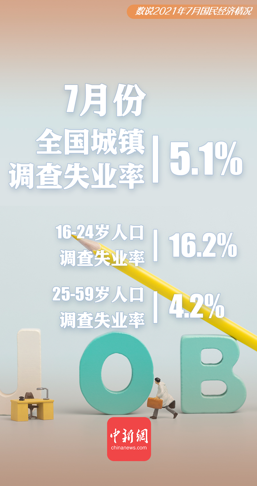 7月份,全國(guó)城鎮(zhèn)調(diào)查失業(yè)率為5.1%,比6月份上升0.1個(gè)百分點(diǎn)。16-24歲人口、25-59歲人口調(diào)查失業(yè)率分別為16.2%、4.2%。全國(guó)企業(yè)就業(yè)人員周平均工作時(shí)間為47.7小時(shí),比6月份增加0.1小時(shí)。(記者 李金磊)