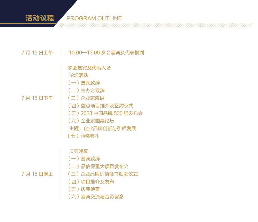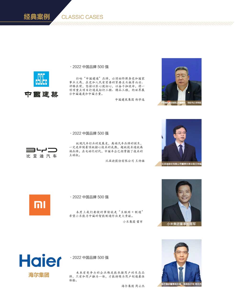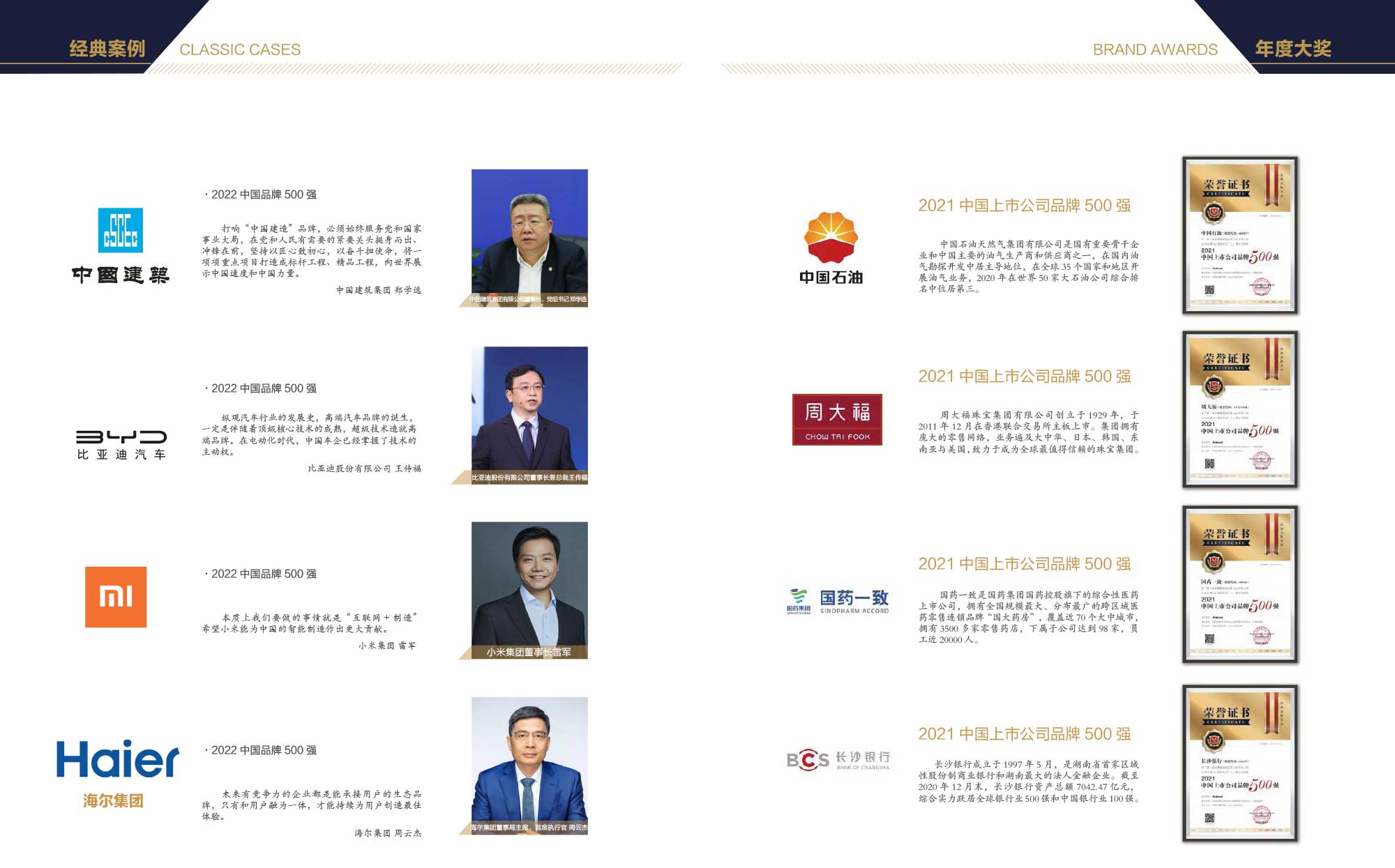 揭曉年度創(chuàng)新企業(yè)家,樹(shù)立品牌榜樣,弘揚(yáng)創(chuàng)新精神,謳歌品牌人物,推出企業(yè)品牌金融創(chuàng)新服務(wù)解決方案,賦能企業(yè)品牌價(jià)值變現(xiàn)。“2023品牌強(qiáng)國(guó)論壇暨中國(guó)品牌500強(qiáng)發(fā)布會(huì)”于7月15日在北京隆重舉行。